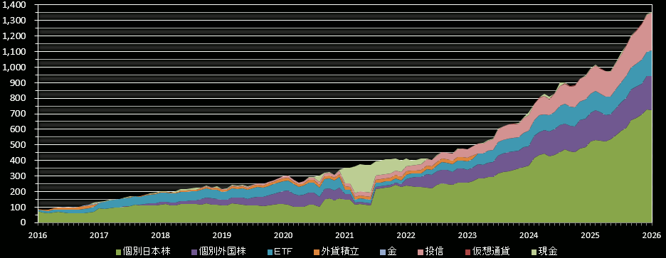 資産記録は2016年から始めており2025年末をもって10年間が経過。
